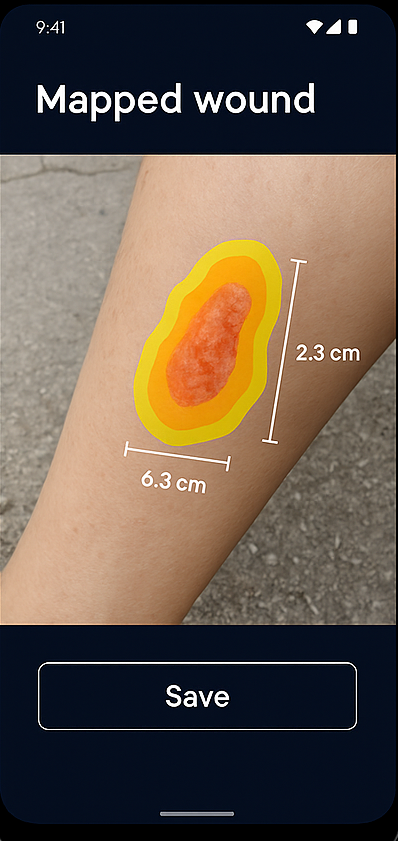 This innovation expanded support to 100x more Android phones by eliminating the dependency on ToF hardware. Users are guided through the scanning process via a UI that ensures stable capture, enabling precise 3D wound measurement for clinical and personal health tracking.